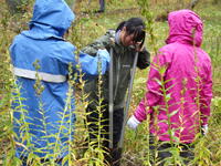 10月14日(火)尾瀬国立公園大清水湿原にて、東京パワーテクノロジー株式会社尾瀬林業事業所の皆様と、野生動物による採食被害で株数が激減したミズバショウの移植活動を実施しました。かつてのミズバショウの群落を取り戻すべく、一つ一つ、丁寧に苗を移植し、チームプレーで主体的に保護活動に勤しみました。