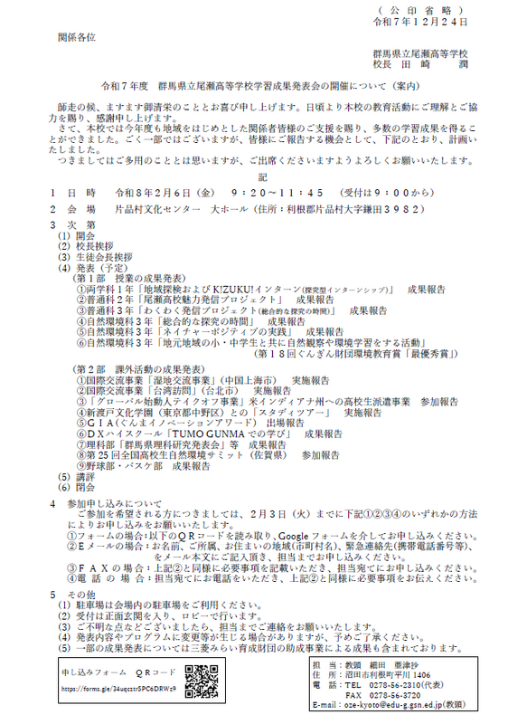 【案内】「令和7年度 尾瀬高校学習成果発表会」2月6日(金)開催.pdf