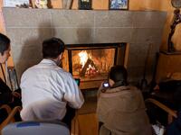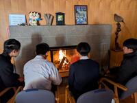 12月16日(火)、自然環境科3年生がミーティングルーム1にある暖炉に何年か振りに火を入れました。先生によれば、5、6年振りとのことです。雪が積もり、寒さが厳しい本校です。生徒たちがエージェンシーを発揮し、薪を準備しました。時よりバチバチっと爆ぜる薪の音とメラメラと燃える炎のゆらめきがとても心地よいです。贅沢な時間を過ごしています。