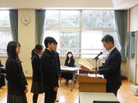 12月23日(火)、表彰伝達、終業式が行われました。さらに、養護教諭からのご挨拶、生徒指導主事、教務主任からお話がありました。