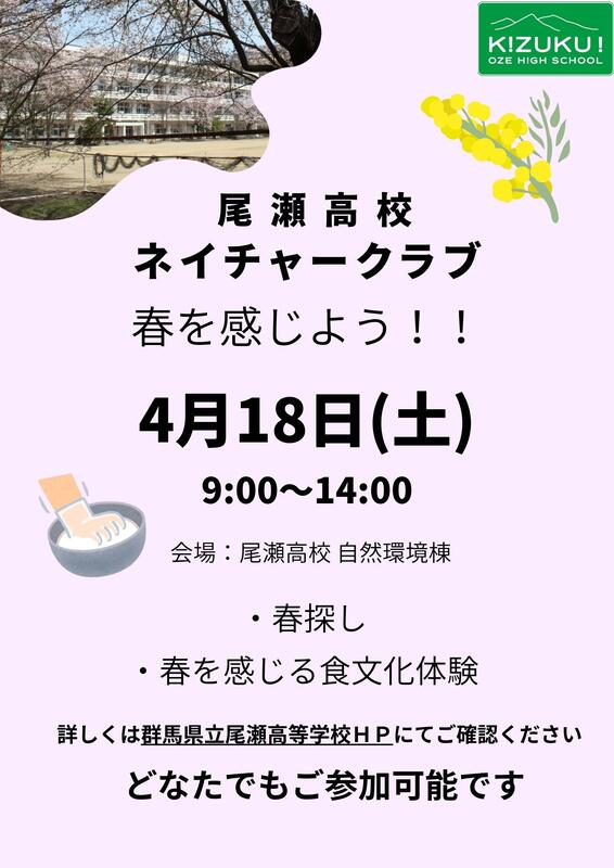 4月ネイチャークラブ「春を感じよう!!」に関するご案内