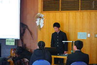 2月3日(火)6限に、進学・就職の進路が決まった3年生を代表して12名の生徒が、進路選択から決定に至るまでの経緯や合格に向けて努力したことなどについて、1・2年生に向けて熱い思いを語りました。1・2年生は、3年生の実体験に基づいた話を聴き、熱心にメモを取っていました。生徒一人一人が自分なりに納得できる進路選択をより現実的に捉え、主体的に考える力を身に付けてほしいです。そして、すべての3年生が、新天地で活躍することを期待しています。