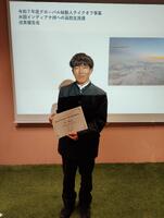 1月17日(土)群馬県庁31階Ginghamで開催された令和7年度グローバル始動人テイクオフ事業米国インディアナ州への高校生派遣に係る成果報告会にて、10/26(日)から 11月3日(日曜日)の1週間、米国インディアナ州への研修派遣に参加した自然環境科2年の石川君が成果報告を行いました。石川君は、自分自身の言葉で、体験したことや同じ高校生との交流で生じた思い、研修を通して得た学びへの姿勢などについて堂々と語りました。