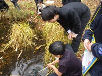 今回の活動は、石墨棚田でイルミネーションの設置や自然観察を行いました。地域の方から棚田の歴史を学び、参加者の皆様と協力して作業をしました。自然観察では、周辺の池や川で生き物を探し、カワニナやミズカマキリ、ヤゴ、サワガニなどを観察することができました。参加者の皆様との交流を楽しむことができました。