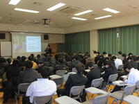 12月18日(木)群馬県地域創生部文化財保護課より石川様を講師としてお招きし、自然環境科の全生徒向けに、文化財保護法や文化財(主に天然記念物)に対する自然観察・調査時の注意点等についてご講義いただきました。特別天然記念物「尾瀬」「カモシカ」「安中原市のスギ並木」について、大変有益なお話を詳しく伺うことができました。「天然記念物「草津白根のアズマシャクナゲ及びハクサンシャクナゲ」の葉の裏に寄生しているグンバイムシを採取する場合許可は必要か?」などケースごとの問題や解答には、皆が引き込まれました。守るべき法律をしっかり理解した上で、学習や調査研究をしていかなければならないと肝に銘じました。石川様、ありがとうございました!