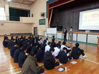4月22日(水)3年生を対象に主権者教育「笑える政治教育ショー in 群馬」を実施しました。お笑いコンビ「ジグザグジギー」のお二人を講師としてお招きし、笑いを交えながら民主主義の仕組みや投票の意義についてわかりやすく解説していただきました。