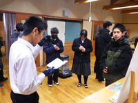 2月3日(火)2~4校時に、自然環境科3年生が、学びの集大成として、1・2年生に向けて「総合的な探究の時間」等の探究学習の個性あふれる研究成果を発表しました。後輩へ「準備はなるべく早く」「わからないことがあったら、すぐに先生に相談してみよう」「最後まであきらめないで」「自分の本当にやりたいことをテーマにした方が良い」など心のこもったアドバイスをしていました。1・2年生は、発表を聞くことで自然環境科の探究学習について理解を深める良い機会となりました。各々、堂々と発表する3年生の姿は、本当に頼もしく、素晴らしいものでした。卒業が近いことをしみじみと感じます。